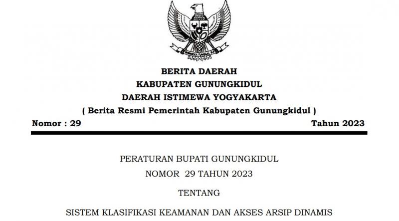 - Perbup Gunungkidul Nomor 29 Tahun 2023 tentang Sistem Klasifikasi Keamanan dan Arsip Dinamis